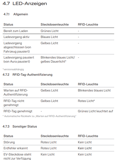 Was bedeuten die LEDs und Farben an Ihrem Charge Amps Aura Ladegerät?