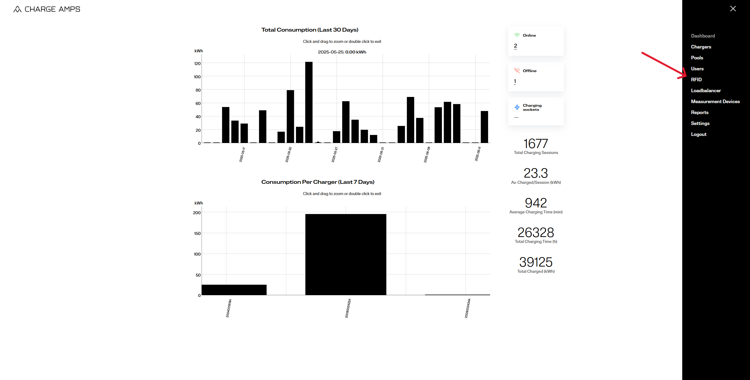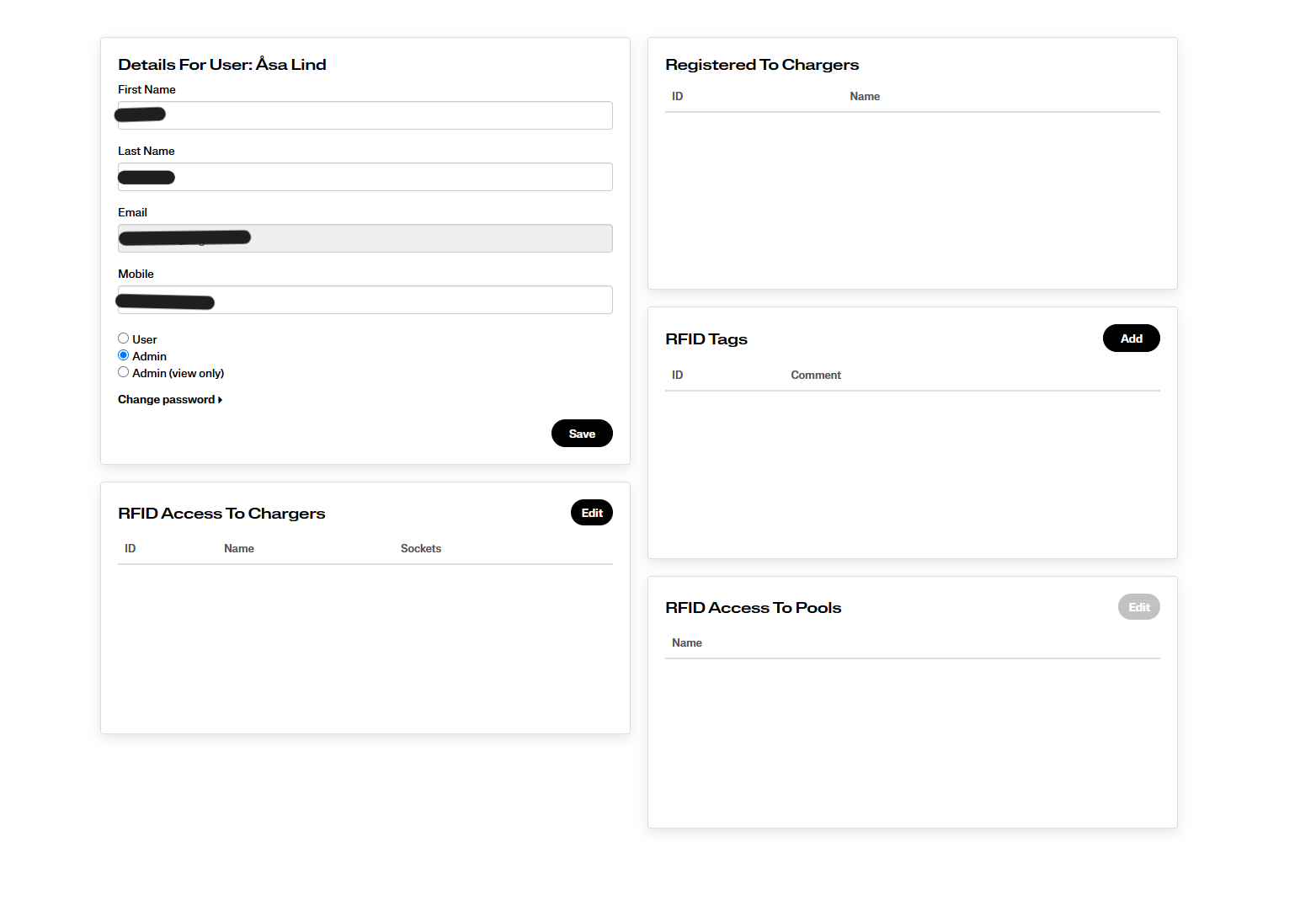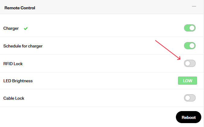 - RFID Access To Chargers: styr vilka laddare användarens taggar har åtkomst till