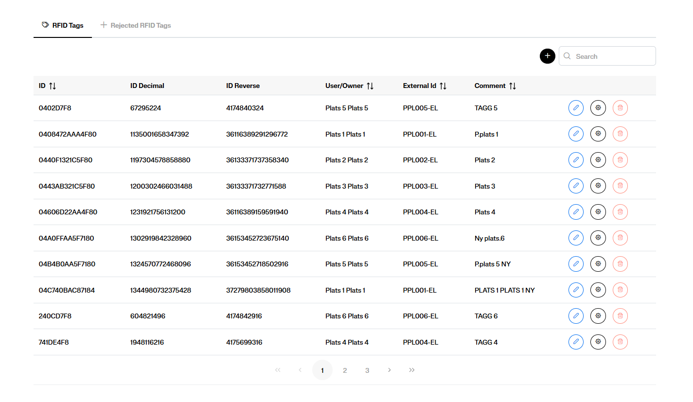 I denna vy visas alla registrerade RFID-taggar: